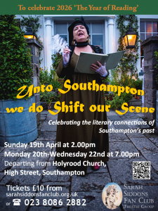 This April as part of The National Year of Reading, The Sarah Siddons Fan Club Theatre invite residents and visitors to take a step back in time and join us for a matinee street theatre performance – a literary promenade through old Southampton in the company of the Kemble acting Family who will introduce you to the thoughts and words of writers, poets and dramatists who wrote about Southampton. Poetry, Prose, Drama, will all be part of the dramatic readings and interludes performed for your entertainment. All set against the atmospheric backdrop of the medieval old town,